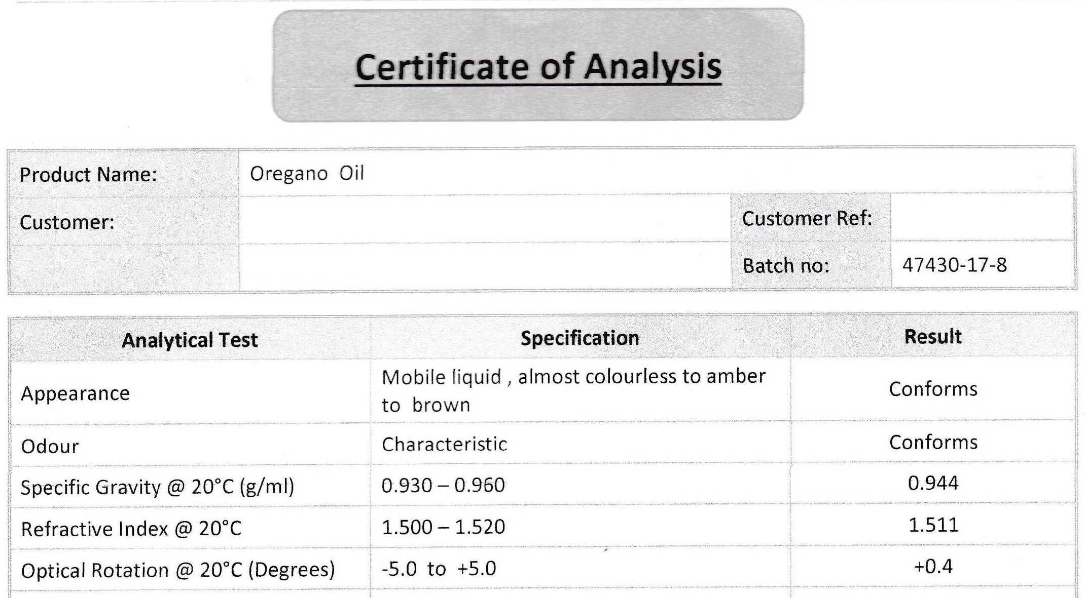 אנליזה לשמן אורגנו